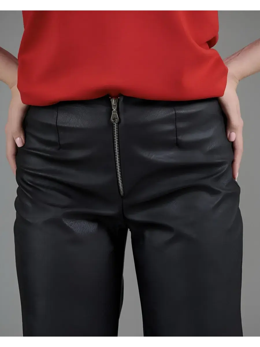 Эти стильные брюки клеш, от бренда Raufa, станут идеальным дополнением вашего гардероба. Изготовленные из качественной экокожи, они обеспечивают комфорт и удобство при ежедневной носке. Декоративная молния добавляет оригинальности и подчеркивает индивидуальность владельца.